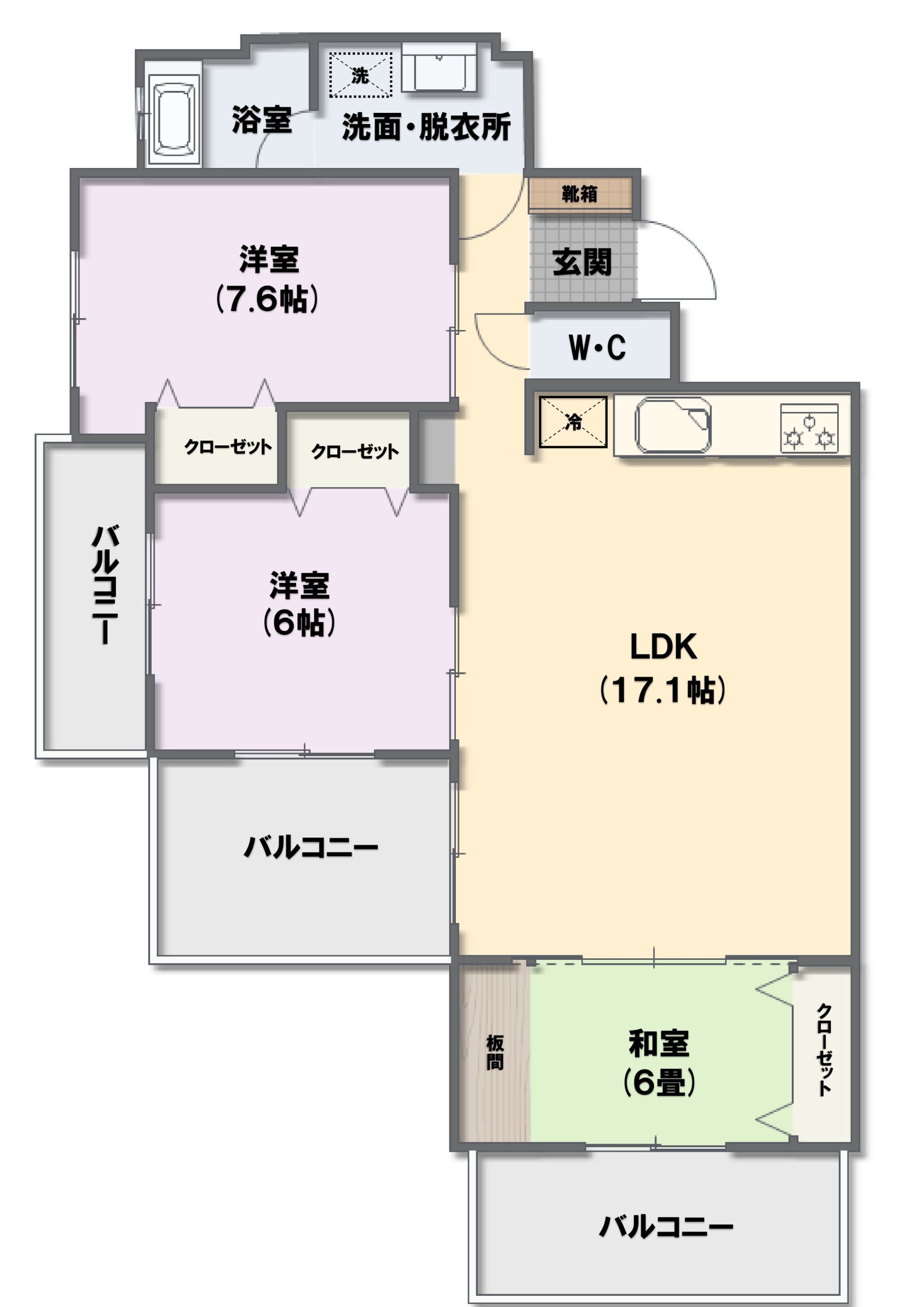 | 間取詳細 | 和 6 / 洋 6・7.6 / LDK 17.1 | ||