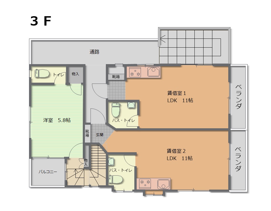 備考 3Fフロアに賃借中ワンルームが2部屋あり毎月の家賃収入は約10万円です。年間固定資産税約18万円
